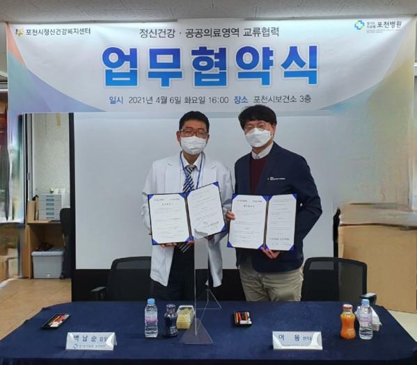 [KNT한국뉴스타임] 포천시정신건강복지센터․자살예방센터와 경기도의료원 포천병원은 지난 6일 코로나19 확진자, 자가격리자, 퇴원자 등 심리, 정서적 어려움에 처한 포천시민을 대상으로 통합적 사례관리 서비스 제공을 위한 업무협약(MOU)을 체결했다.