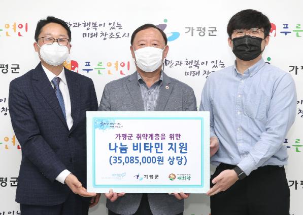 이날 기부받은 비타민은 가평군 드림스타트 사례관리 아동 160명과 북면지역 거주 노인 1천여명에게 전달될 예정이다.