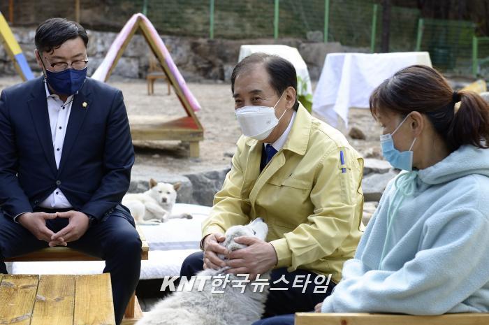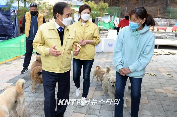[한국뉴스타임=포천] 박윤국 포천시장은 지난 13일 유기동물보호소의 실태와 애로사항을 청취하기 위해 배우 이용녀 씨가 운영하는 유기동물보호소를 방문했다.