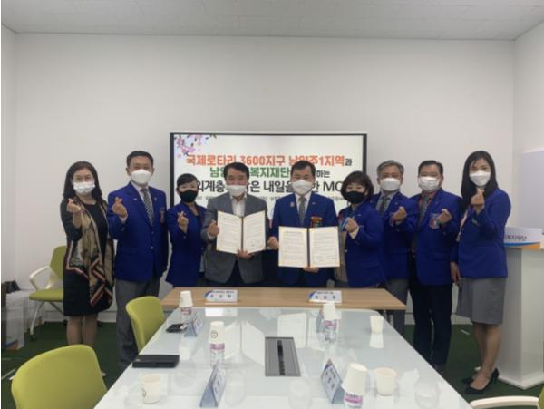 [KNT한국뉴스타임] 남양주시복지재단은 지난 13일 국제로타리 3600지구와 업무 협약(MOU)을 체결했다.