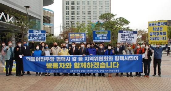 [KNT한국뉴스타임] 더불어민주당 평택을지역위원회는 17일 토요일 오전 11시 평택역에서 평택갑지역위원회와 함께 쌍용자동차 정상화를 위한 기자회견을 열었다. 이날 기자회견은 지난 15일 서울회생법원이 쌍용자동자의 기업회생절차를 개시하기로 결정한데에 이른 지역위원회의 입장문 발표로 기자회견에는 평택을지역위원장인 김현정 노동대변인을 비롯 갑지역 홍기원 국회의원과 지역 시·도의원 및 핵심당원이 참석하여 뜻을 함께하였다.