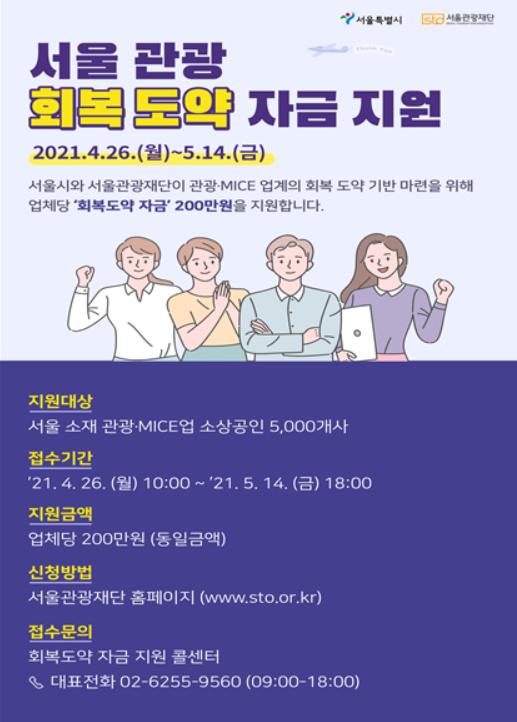 자세한 신청요건과 제출서류 등은 4월 19일부터 서울시와 서울관광재단, 서울특별시관광협회 홈페이지에 게시된 공고문을 통해 확인할 수 있다. 또한, 원활한 서류 준비와 신청을 위해 공고일인 4월19일부터 ‘회복도약 자금 지원 콜센터’도 운영한다.