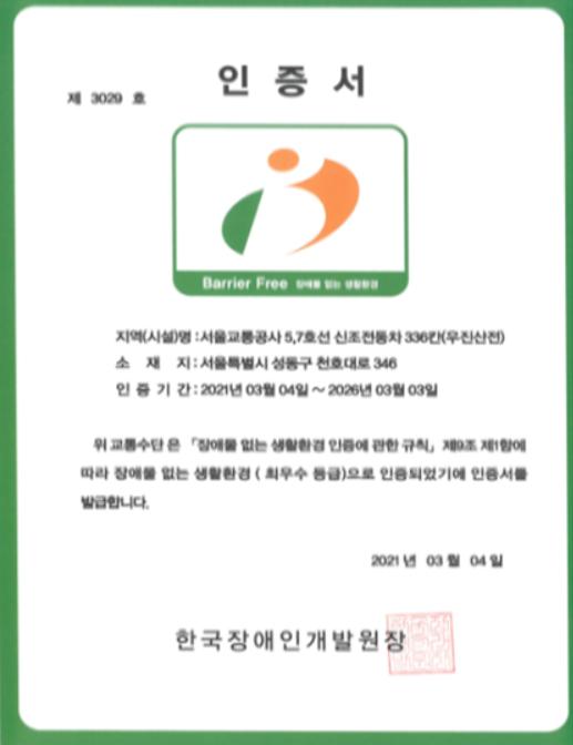 2017년 도입돼 운행 중인 2‧3호선 전동차(588칸)는 작년 12월 처음으로 BF 인증을 받았고 올 3월에는 5‧7호선에 도입될 전동차(336칸)가 BF 인증을 받았다.