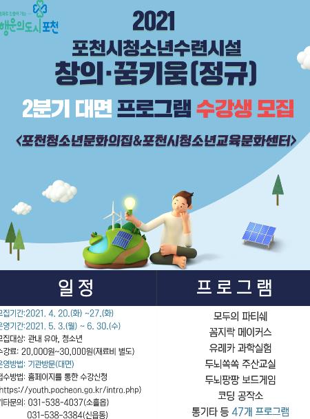 [KNT한국뉴스타임] 포천시 청소년수련시설은 코로나19 장기화로 인한 청소년 체험활동 욕구를 해소하기 위해 관내 청소년들을 대상으로 대면 창의교육·꿈키움(정규)프로그램을 운영한다.