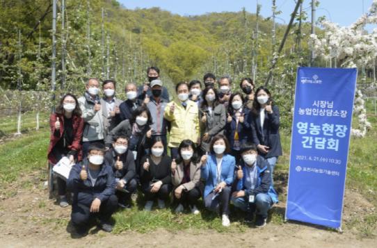 [KNT한국뉴스타임] 포천시는 지난 21일 창수면 사과농가에서 읍면동 농업인상담소장을 대상으로 영농현장 간담회를 열었다.