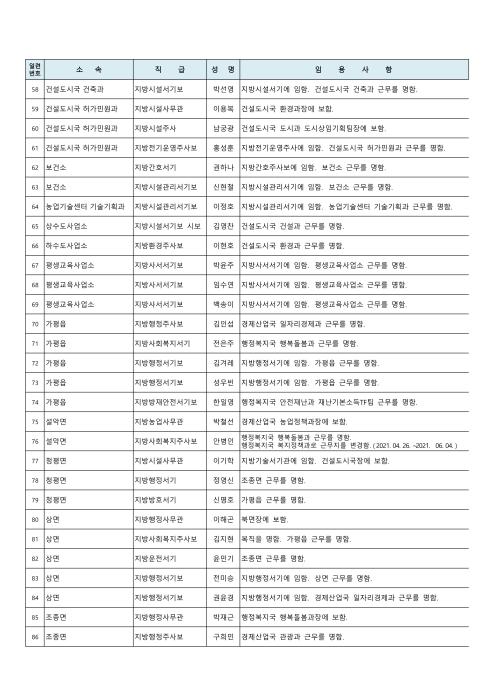 가평군 신임 건설도시국장 이기학 청평면장 승진포함 97명 인사발령
