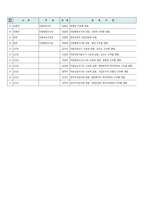 이범주 설악면장, 안동석 청평면장, 위선경 상면장, 권택순 조종면장, 이해곤 북면장 보직