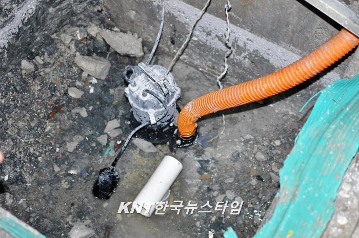 실제로 지하주차장 양측면에 설치된 임시 집수정에는 건조기임에도 불구하고 많은양의 지하수가 분출되고 있었다.