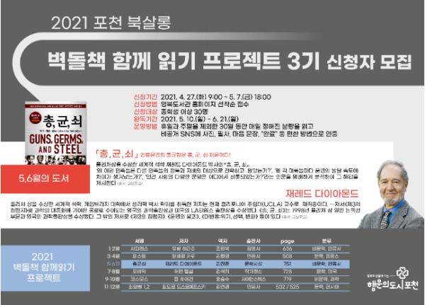 [KNT한국뉴스타임] 포천시는 개인의 독서진흥을 위해 녥년 포천 북살롱-벽돌책 함께 읽기 프로젝트’를 운영한다.