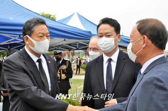 | ( 김성기 가평군수와 로버트 랩슨 주한미국대사 대리 ) | | ( 인사하는 김성기 가평군수와 황기철 국가보훈처장 ) |