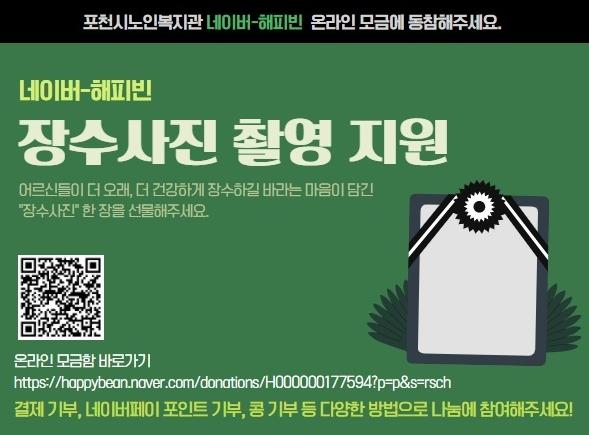 포천시노인복지관(이종범 관장)은 오는 7월 12일까지 온라인 나눔 커뮤니티 사이트인 네이버-해피빈을 통해 지역 취약계층 어르신들의 장수사진(영정사진) 촬영 지원을 위한 온라인 모금을 진행한다,