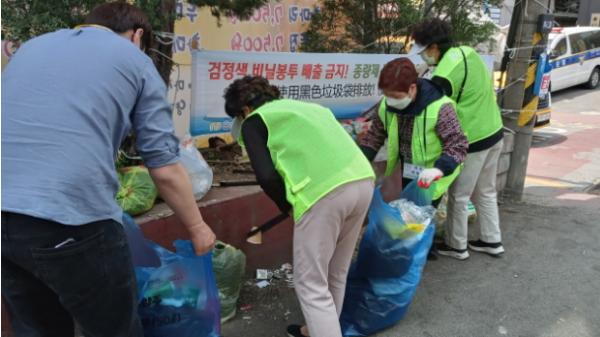 이날 협의체 위원들은 재활용 극대화 및 무단투기 근절을 위해 실시하고 있는 시민 참여형 자원 순환 운동 「싹쓰리 챌린지」에 동참해 다산1동 구도심 중촌마을 곳곳을 분주히 다니며 환경 정화 활동 및 분리 배출 홍보, 무단투기 적발 등을 위해 구슬땀을 흘렸다.