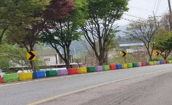 또한 덕현리 임초교 주변 350m 구간에 설치돼 있는 노후되고 퇴색한 콘크리트 방호벽에 빨강, 파랑, 노랑, 녹색, 초록, 보라 등 다양한 색을 칠해 시인성이 뛰어난 디자인 연출로 도로경관을 개선했다.
