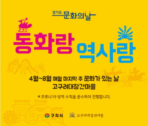 경기도 문화의 날인 매월 마지막 주 수요일에 진행되는 이번 프로그램은 고구려와 연관된 동화책을 활용한 스토리텔링으로 유아들에게 고구려 역사를 올바르게 이해하고 또 다양한 체험을 통해 즐거운 경험을 제공하고자 기획됐다.