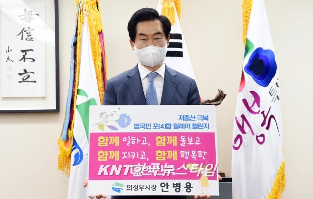 [한국뉴스타임=이명수기자] 의정부시 안병용 시장은 26일 저출산 극복 캠페인인‘범국민 포(4)함 릴레이 챌린지’동참했다.