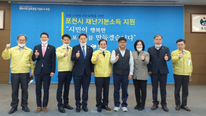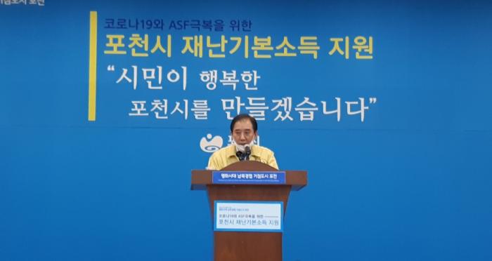 31일 오전 포천시청 대강당에서 박윤국시장은 코로나19 포천시 재난기본소득 지원 긴급정책발표 기자회견을 가졌다.