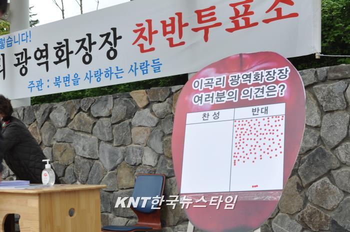 30일 가평군 북면에서는 가칭 '북면을 사랑하는 사람들'이 주최한 "이곡리 광역화장장 찬반투표소"가 실시되었다. 이날 100여명의 지역주민들이 참석하여 광역화장장 반대 의견을 공식화 했다.