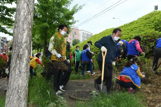 [KNT한국뉴스타임] 구리시는 지난 30일 수택1동 왕숙천로 법면에 구리시 시화인 철쭉 1,000주를 식재하는 나무 심기 행사를 주민과 함께 개최했다.