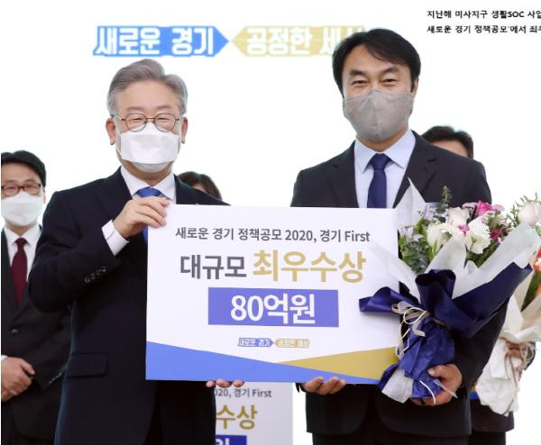 새로운 경기 정책공모에서 김 시장은 2020년 80억원을 받은‘공유와 나눔 생활愛(애).疏(소).始(시) 사업’과 2019년 60억원을 받은‘하남시 소복(疏)마당 사업’의 사업설명 PT도 직접해 기여한 바 있다.