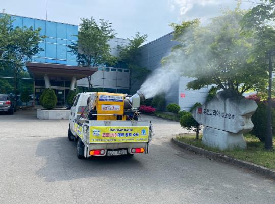 [KNT한국뉴스타임] 경기도와 GH(사장 이헌욱)는 경기도 내 외국인투자단지 8개소(평택 어연한산ㆍ오성ㆍ현곡ㆍ추팔ㆍ포승, 화성 장안1ㆍ2, 파주 당동)를 대상으로 코로나-19 예방을 위한 대대적인 방역 활동을 시행했다고 3일 밝혔다.