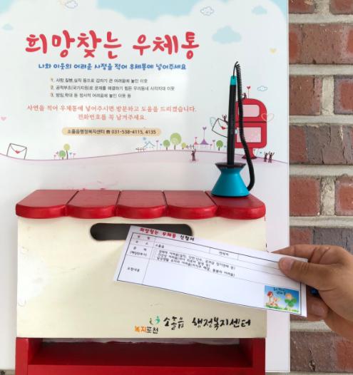 ‘희망찾는 우체통’은 도움이 필요하지만 타인의 시선 때문에 선뜻 도움을 요청하지 못하는 시민들을 위해 비치한 것으로, 사연을 기재하여 우체통에 넣으면 담당자가 수거해 접수된 가구에 대한 상담과 방문을 통해 맞춤형 복지서비스를 지원한다.