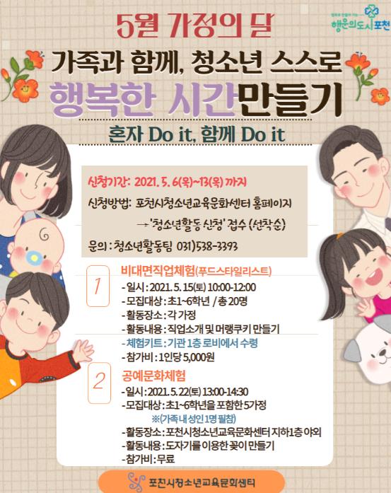 참가비는 1인당 최대 5천 원이며, 포천시청소년교육문화센터 홈페이지에서 온라인으로 신청하면 된다.