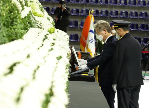 이어 “고인은 투철한 사명감을 갖고 있었다. 항상 밝은 모습으로 동료들을 대하고, 싫은 소리를 해도 화내는 법이 없었다. 어렵고 힘든 일도 솔선수범하는 훌륭하고 믿음직한 소방공무원이었다”라며 “가족을 잃은 텅 빈 마음을 다 채울 수는 없겠지만 유가족 여러분께서 이 깊은 상실감을 딛고 일어설 수 있도록 끝까지 여러분 곁에서 함께 하겠다”며 고인을 추모했다.