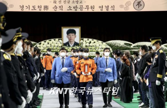 영결식에는 유가족과 장의위원장인 이재명 경기도지사를 비롯해 백군기 용인시장, 국회의원‧시‧도 의원, 동료 소방관 등 90여 명이 참석했다.
