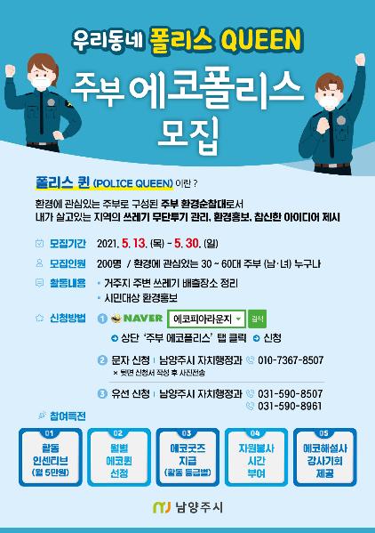 ‘주부 에코폴리스’는 내가 살고 있는 지역의 쓰레기 배출 장소를 정리하고 이웃들에게 환경의 중요성을 전파하는 ‘폴리스 퀸’으로, 환경에 관심 있는 30~60대 남녀주부 누구나 참여 가능하다.