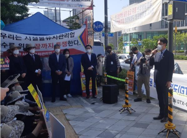 김 시장 등 유치위원회는 ‘GTX-D 노선 강동구-하남시 경유 반영 촉구 결의문’을 낭독하고, 의견 등을 개진하며 항의 집회를 진행했다.