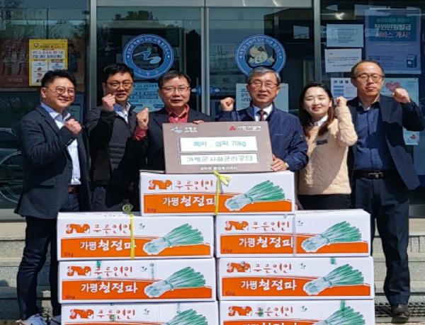 가평시설관리공단(이사장 백병선)은 최근 설악면행정복지센터(면장 박철선)에 쪽파. 실파 70kg(70단)을 기탁하였다.