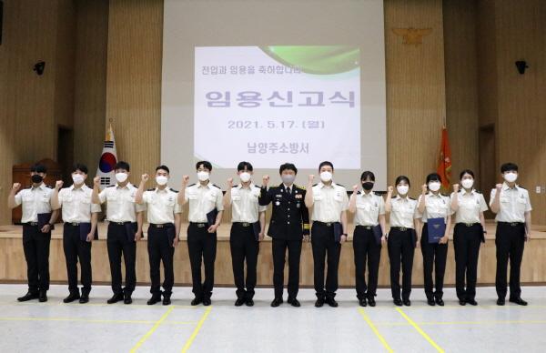 [KNT한국뉴스타임] 남양주소방서는 17일, 본서 3층 대회의실에서 신규임용 소방공무원 12명에 대해 임용장을 수여하였다.