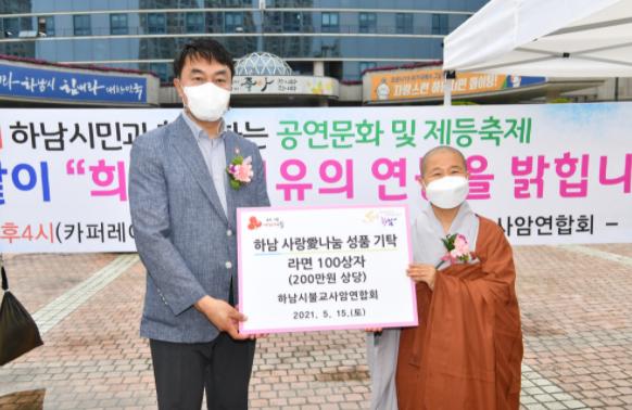한편 기탁식은 이날 시청 앞 광장에서 하남시불교사암연합회 주최로 열린 ‘2021 하남시민과 함께하는 공연문화 및 제등축제’ 현장에서 함께 열렸다.