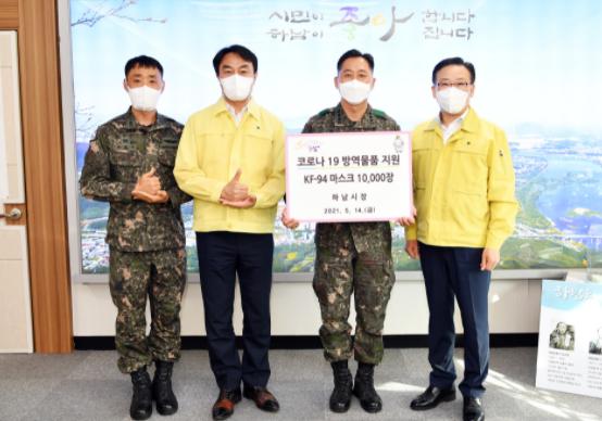 [KNT한국뉴스타임] 하남시는 지난 14일 육군 제3183부대에 코로나19 방역을 위한 KF94 마스크 10,000장을 지원했다고 밝혔다.