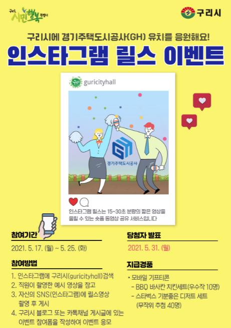 경기주택도시공사를 구리시에 유치하기 위한 시의 적극적인 의지를 반영하고 시민 공감대 확산을 위해 시민과 함께하는 신선한 이벤트를 기획했다. 이번 이벤트는 최근 인기를 끌고 있는 인스타그램 릴스 영상을 응모하는 방식이다.