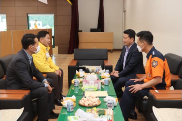 더불어 배영식 의장은 “항상 소방관님들 노고에 감사드린다. 어려운 가운데에서도 최선을 다해 주민들의 안전을 위해 애쓰고 계시는 소방공무원 여러분이 계셔서 우리 군민들이 행복하게 지낼 수 있다. 코로나19가 종식될 때까지 군민의 안전을 위해 끝까지 최선을 다해주길 바란다”고 전했다.