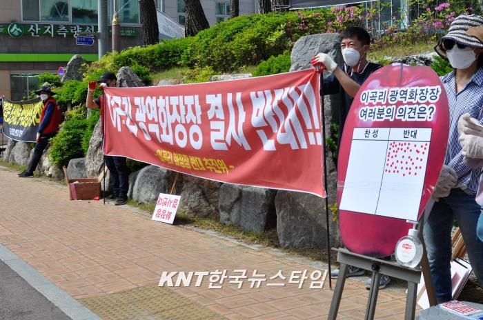 이에 반대위측은 지난 13일 광역화장장 반대위는 가평군청 앞에서 피켓과 현수막을 들고 반대 시위에 나섰으나 코로나19로 다수가 집합하는 시위는 불가하다는 경찰측 해산명령에 30여분만에 집회 해산하였다.