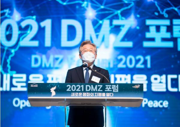 [한국뉴스타임=이명수기자] 이재명 경기도지사가 21일 개막한 ‘2021 DMZ 포럼’에서 생명평화지대로써의 DMZ를 토대로 ‘한반도 평화경제시대’에 대한 구상을 밝혔다.