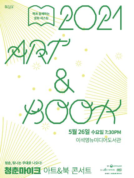‘아트 & 북 콘서트’는 청년예술가들이 직접 선정한 도서와 예술 활동을 연계한 공연을 기획하고 매월 마지막 주 지역 도서관에서 시민들과 함께 나누는 프로그램이다. 대중음악, 국악, 무용 등 다양한 분야의 16팀이 최종 선정되었으며, 5월부터 10월까지 인천ㆍ경기북부ㆍ강원도 내 16개 도서관에서 공연한다.