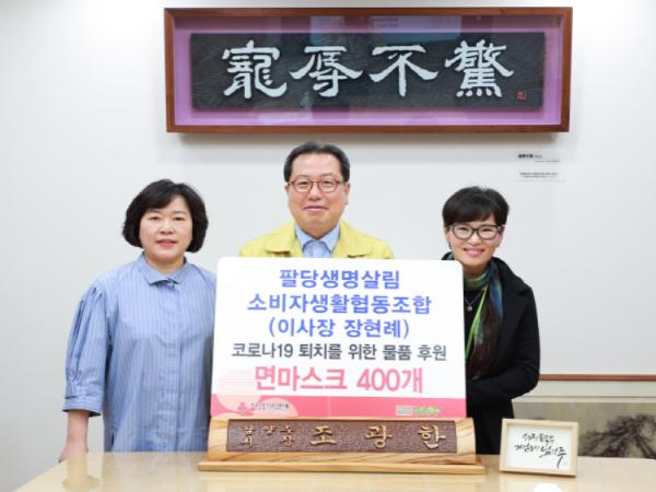[KNT한국뉴스타임] 팔당생명살림 소비자생활협동조합(이사장 장현례)은 6일 코로나19 극복을 위한 마스크 400매를 남양주시 경기사회복지공동모금회에 전달했다.