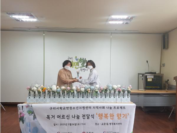 행복한 향기 나눔은 학교 밖 청소년 문화활동 지원사업으로 학교 밖 청소년들이 지역사회에 나눔을 실천하는 자원봉사활동으로 3년째 진행되고 있으며, 교문1동 독거 어르신 50여명에게 전달된다.