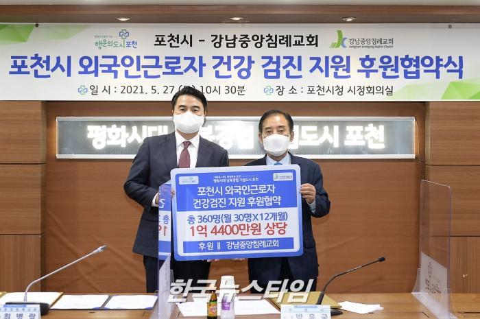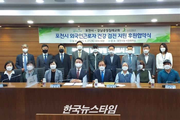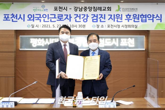 [한국뉴스타임=명기자] 포천시와 강남중앙침례교회는 지난 27일 외국인근로자 건강검진 지원을 위한 후원협약을 맺었다.