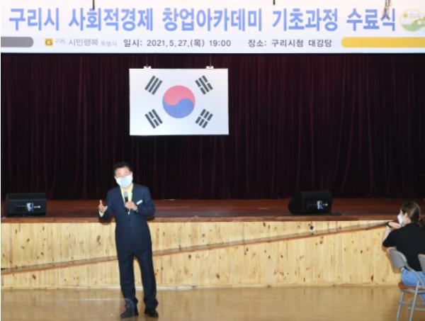 [한국뉴스타임=명기자] 구리시는 지난 27일 시청 대강당에서 2021년 구리시 사회적경제 창업 아카데미 기초과정수료식을 갖고 27명의 수료생을 배출했다.