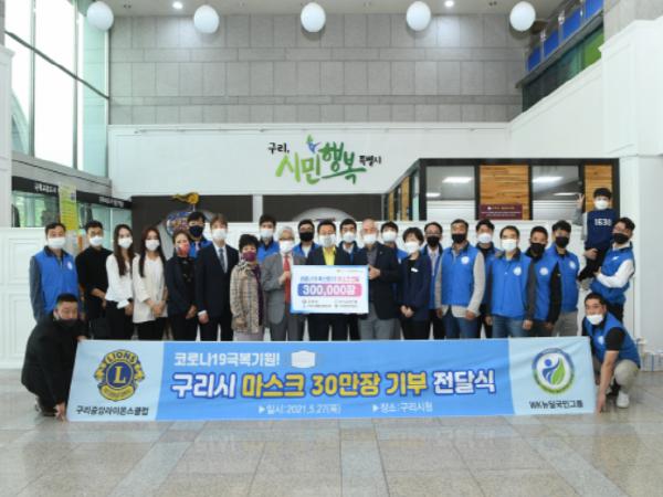WK뉴딜국민그룹이 구리중앙라이온스클럽 오청록 차기회장 취임을 기념하여 마스크 총 30만장을 기부하였으며 전달된 마스크는 방역물품의 지원이 시급한 사회복지시설·기관(경로당 14만장, 자원봉사자 13만장, 종합사회복지관 3만장)에 배부할 예정이다.