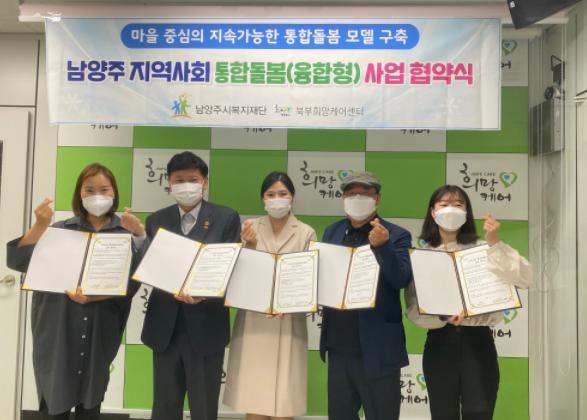 통합돌봄(융합형) 사업을 위해 북부희망케어센터와 협약을 진행한 기관은 남양주백병원(병원장 백철수), 성심사랑요양원(시설장 이광현), 휴메디병원(병원장 김승혜), 남양주시북부장애인복지관(관장 공상길), 새롬의집(시설장 문기순), 신애원(시설장 정혜전), 현대병원(병원장 김부섭) 등 총 7개 기관이다.