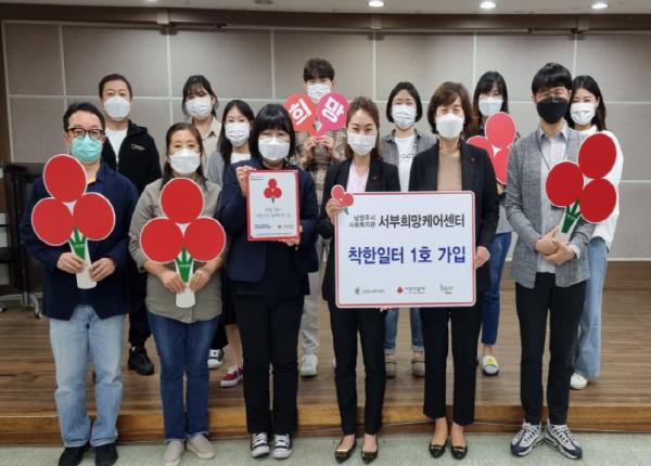 서부희망케어센터 신영미 센터장은 “복지 현장에서 열심히 뛰어다니는 직원들이 먼저 제안해 ‘착한일터’에 가입하게 됐다. 후원에도 솔선수범하는 모습이 지역 사회의 귀감이 되길 바라며, 후원에 대한 관심을 이끌어 내기 위해 최선을 다하겠다.”라고 밝혔다.