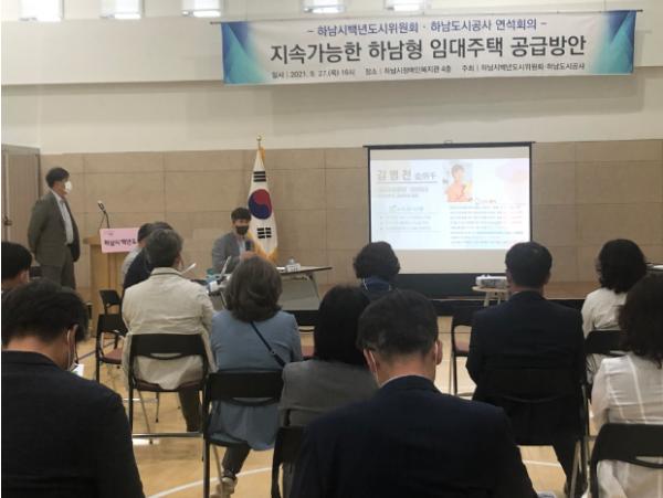 [한국뉴스타임=명기자] 하남시는 27일 장애인복지관 대강당에서 ‘지속가능한 하남형 임대주택 공급’주제로 백년도시위원회 연석회의가 개최됐다고 밝혔다.