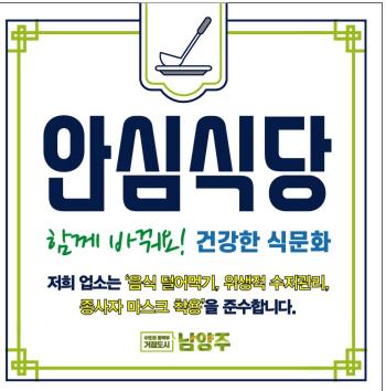 남양주시는 지난해부터 방역수칙을 철저히 준수하는 업소를 발굴해 ‘남양주 안심식당’으로 지정 관리해 오고 있으며, 안심식당으로 지정된 식당에 ‘남양주 안심식당’ 표지판을 부여하고 있다.
