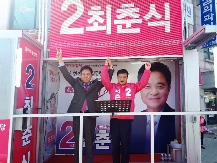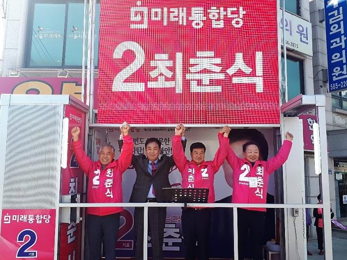이날 지지연설에서 박 전의원 지난 2년동안 최저임금의 급격한 상승으로 자영업자가 도탄에 빠지고 실업률리 증가 했다고 주장했다. 이어 이번 4.15총선에서 보수대통합을 이룬 미래통합당 최춘식 후보를 선출해서 대한민국을 바로 잡아야 한다고 지지를 호소했다.