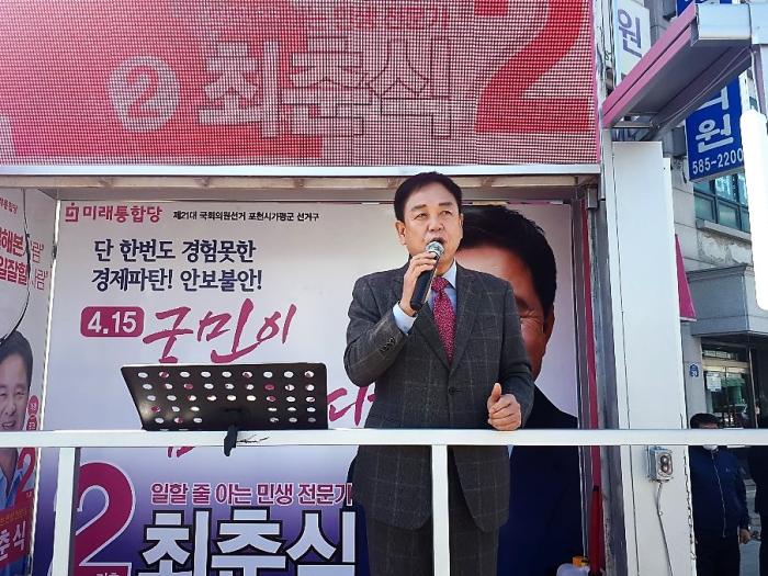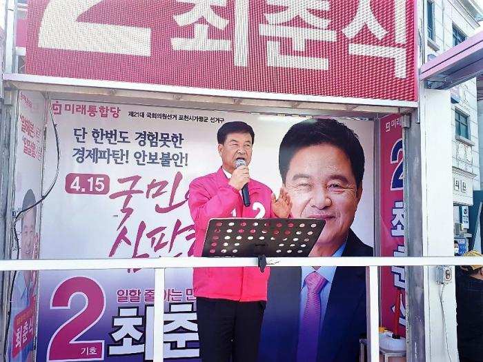 [KNT가평뉴스타임=명기자] 8일 오후 가평군 조종면 현리터미널에서 미래통합당 최춘식 후보 유세현장에서 박종희 전국회의원의 지지 연설이 있었다.